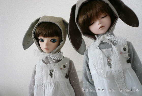 リネンとダブルガーゼの生地で兎耳帽子をつくりました。