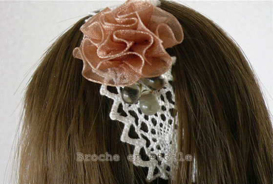 幅広のレースリボンを、平ゴムを使用しヘアバンドにしてみました。