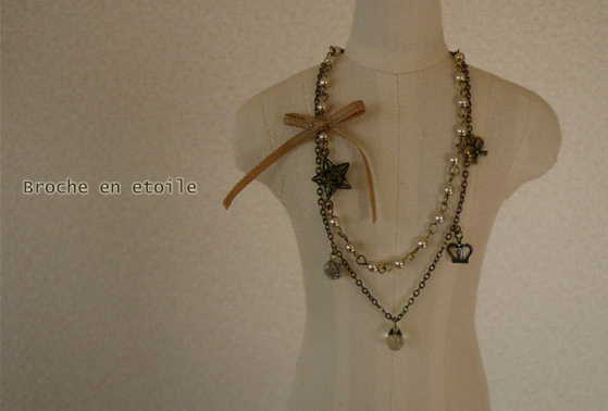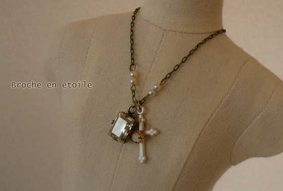 エメラルドカットの透明石と白い十字架を繋げたネックレスです。