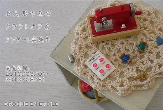 2010/03/01~2010/03/31の1ヶ月間、ドールオーナー様の交流を目的としたクラフトオフ会に関するアンケートを実施させていただきたいと思います。