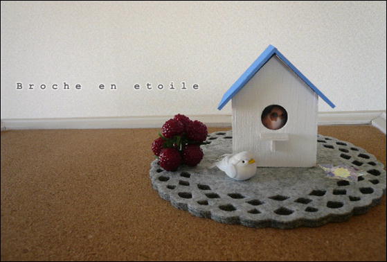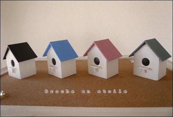 小鳥の巣箱は以前自分用に製作した物と形は同じで(色は変わります)小さな小鳥もセットになっています。(上画像の小鳥は私物のため、違う色の小鳥がセットになります)