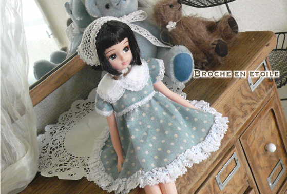 お洋服はDolly Dollyに掲載されていたモモリータさんの形紙を使用して作りました。